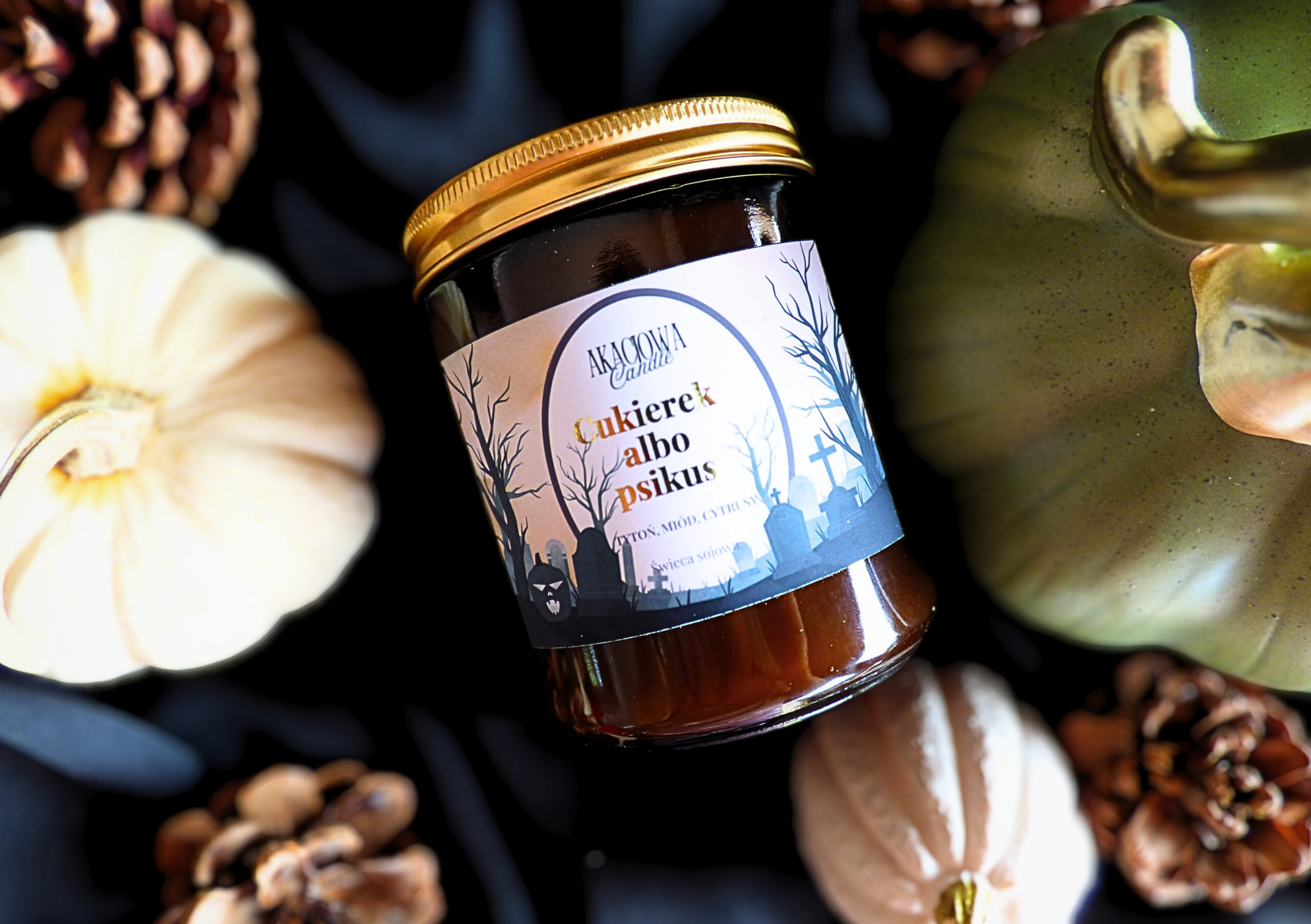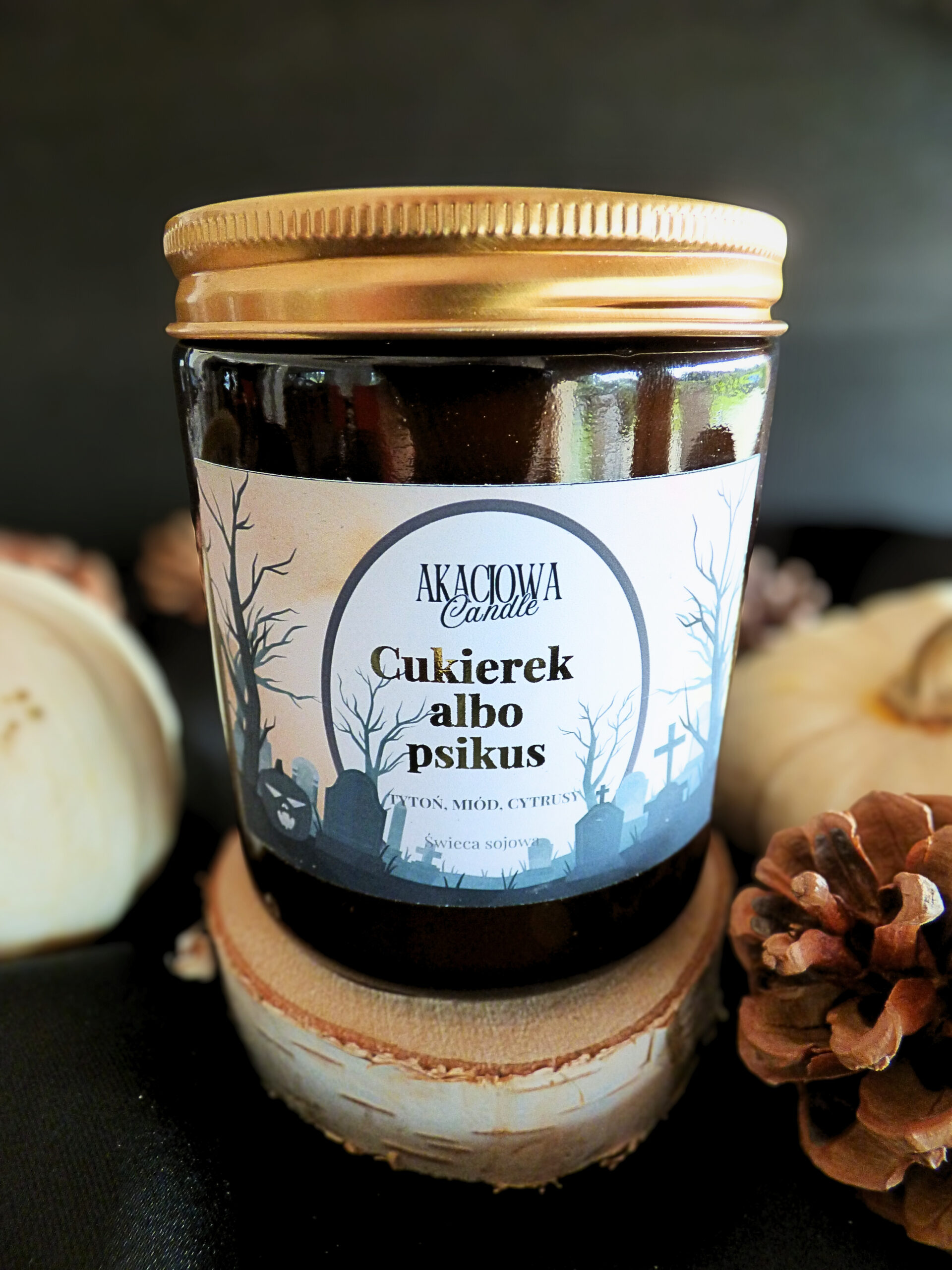 Cukierek albo Psikus – to nie jest zwykła halloweenowa słodycz. Tutaj zamiast garści landrynek masz mieszankę, która pachnie jak dorosła wersja trick or treat: słodki miód, lekko dymny tytoń i soczyste cytrusy, które dodają świeżego pazura. To zapach, który jest jednocześnie kuszący i lekko niegrzeczny – trochę jak wtedy, gdy obiecałaś sobie, że zjesz tylko jednego cukierka… a kończysz na całej paczce. 🎃✨
